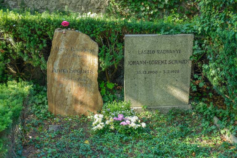 Neben ihr liegt ihr ungarischer Mann Laszlo Radvanyi beerdigt. Ebenso wie sie flüchtet er nach der Machtergreifung der Nationalsozialisten über Frankreich nach Mexiko ins Exil. Anfang der 1950er Jahre kehren sie nach Deutschland zurück. Laszlo wird Professor an der Humboldt-Universität und 1954 Abteilungsleiter im Wirtschaftswissenschaftlichen Institut der Akademie der Wissenschaften der DDR. Er ist der Erste, der noch vor den Lektoren die Manuskripte seiner Frau kritisch bearbeitet.